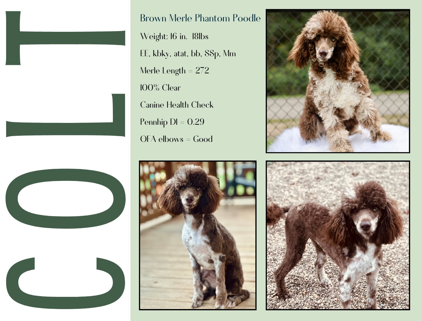 Colt is our attention seeker! He wants to be loved on and cuddled all the time! His favorite thing is playing chase in the yard with the other dogs! He is smart, listens extremely well and loves to please us!